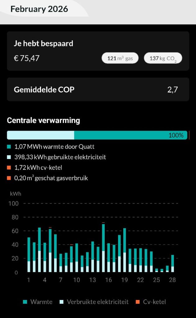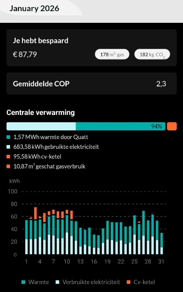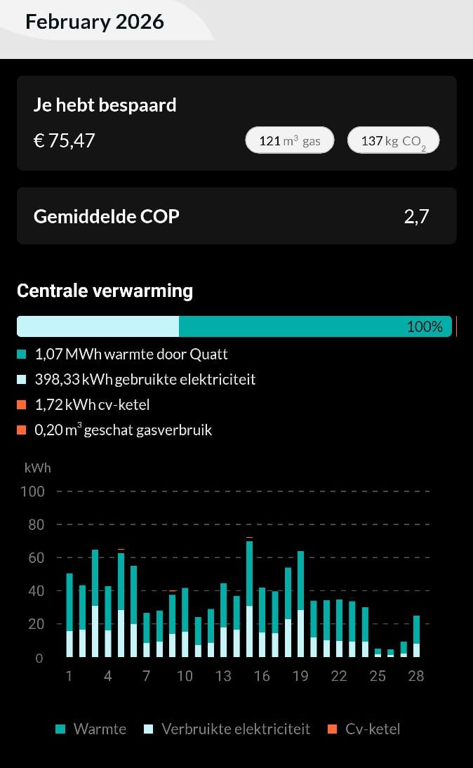 N.a.v. mijn eerdere post kreeg ik al best wel wat vragen. Vaak wilden mensen nog iets meer informatie over het geluid of specifieke data over gebruik en opbrengst. Ik ben geen adviseur van Quatt of technisch expert, maar ik vind het vanuit mijn ervaringen hartstikke leuk om met je mee te denken, dus neem vooral contact op.
